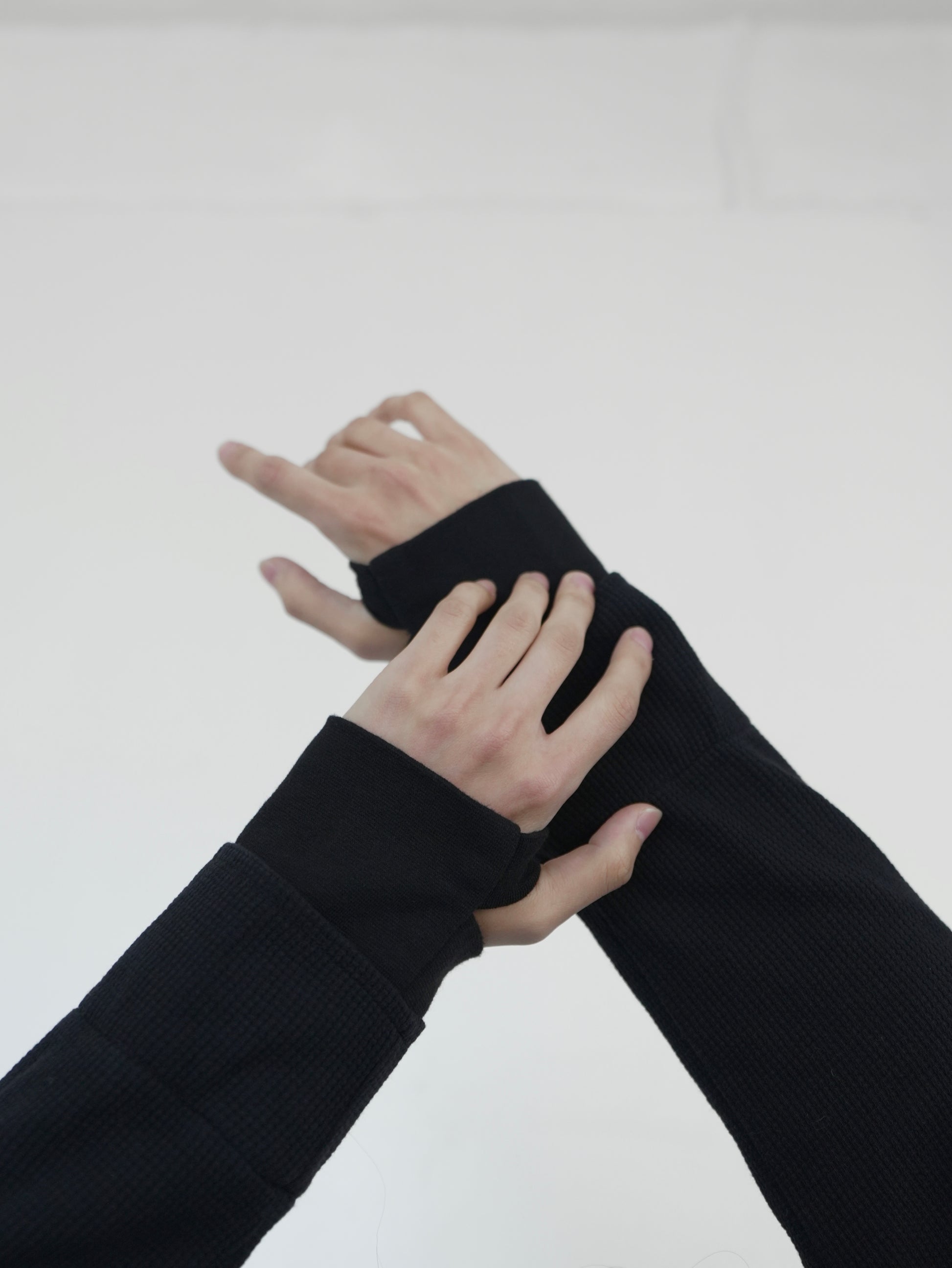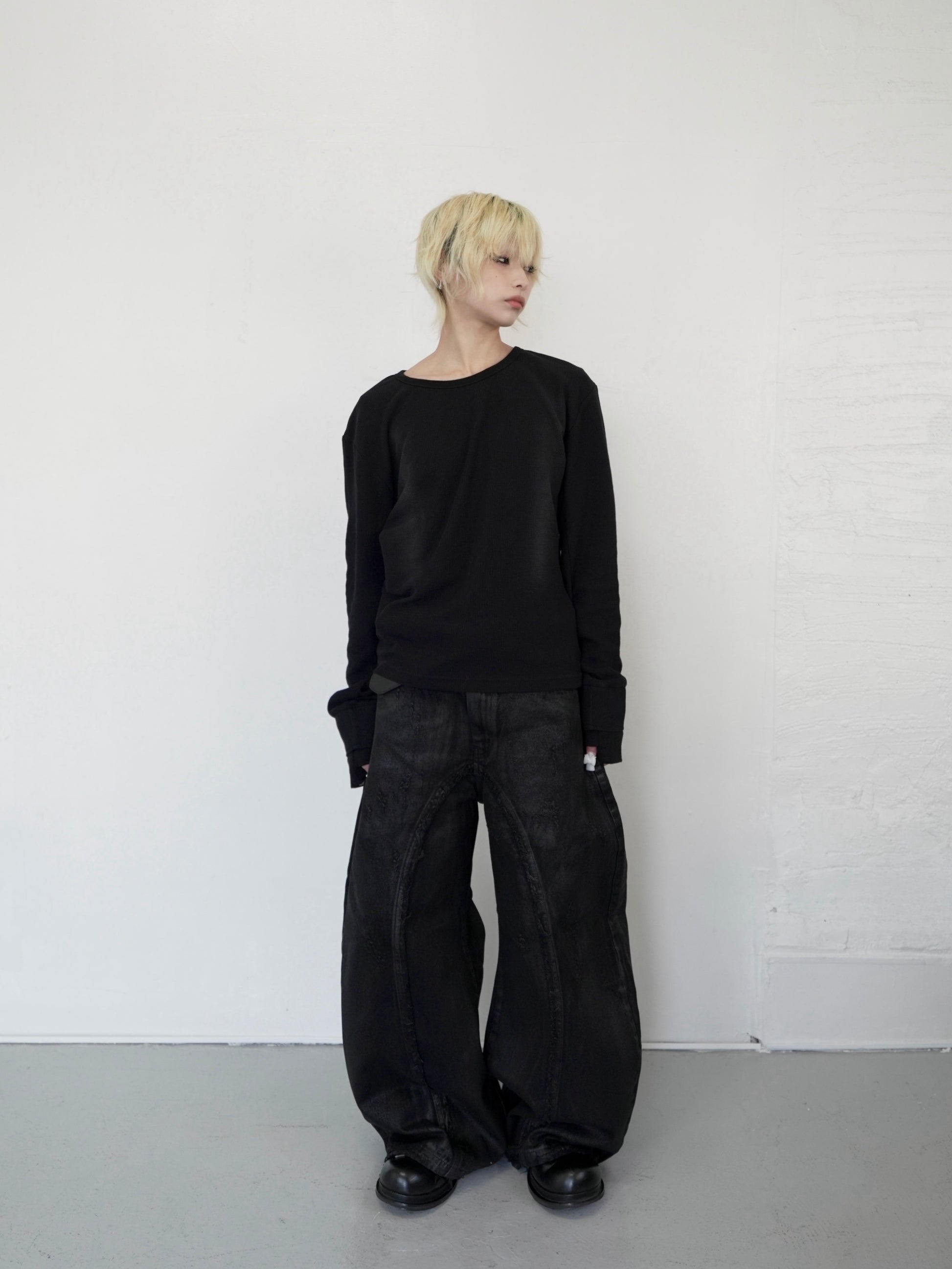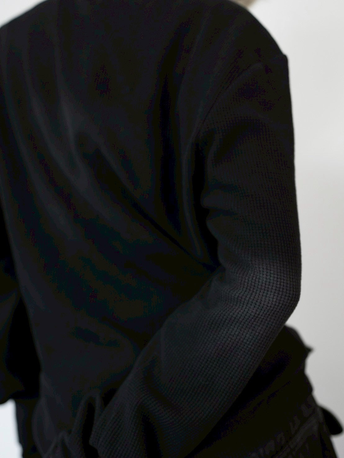 表情のあるワッフル生地を使用したロングスリーブT。