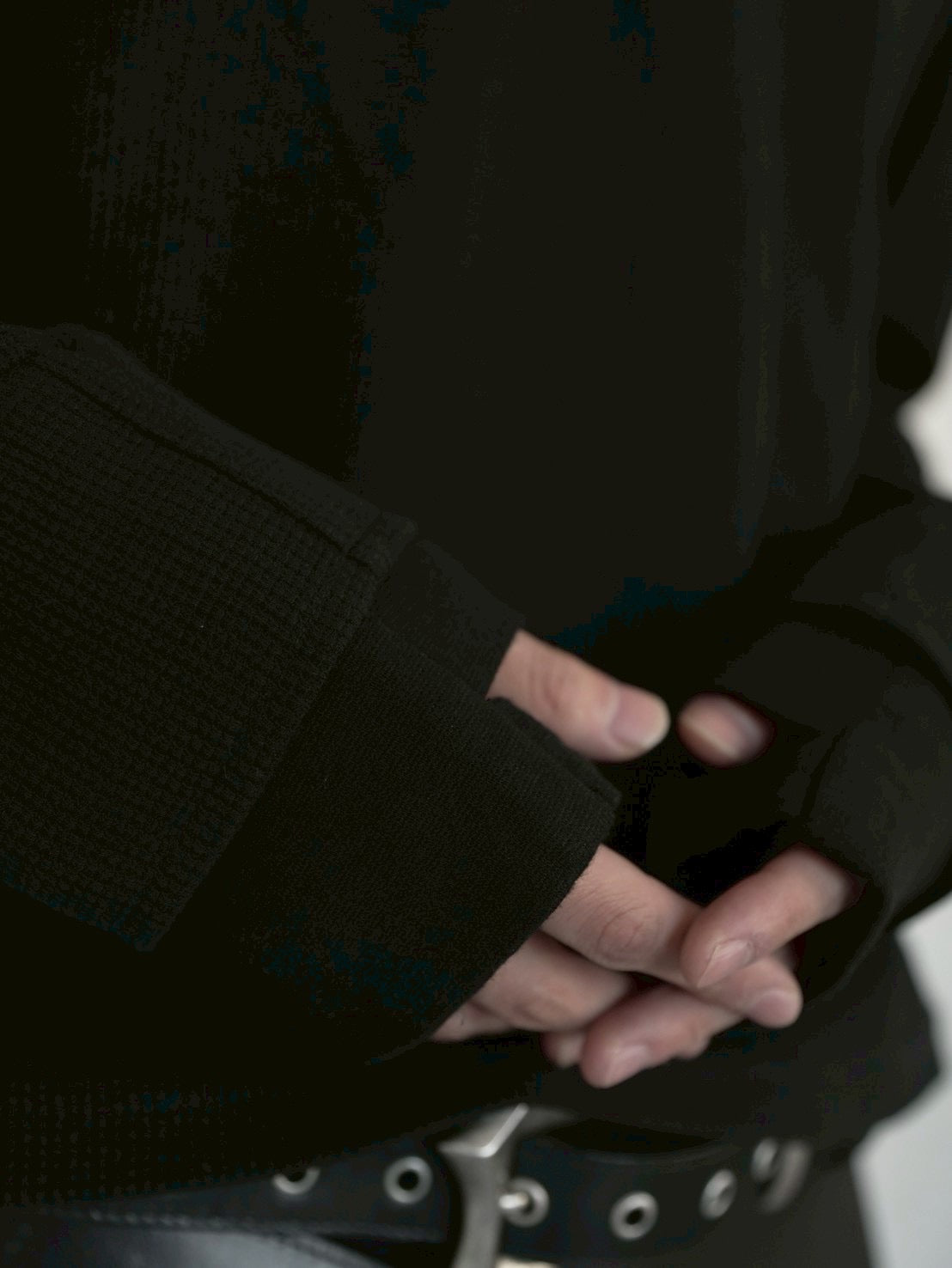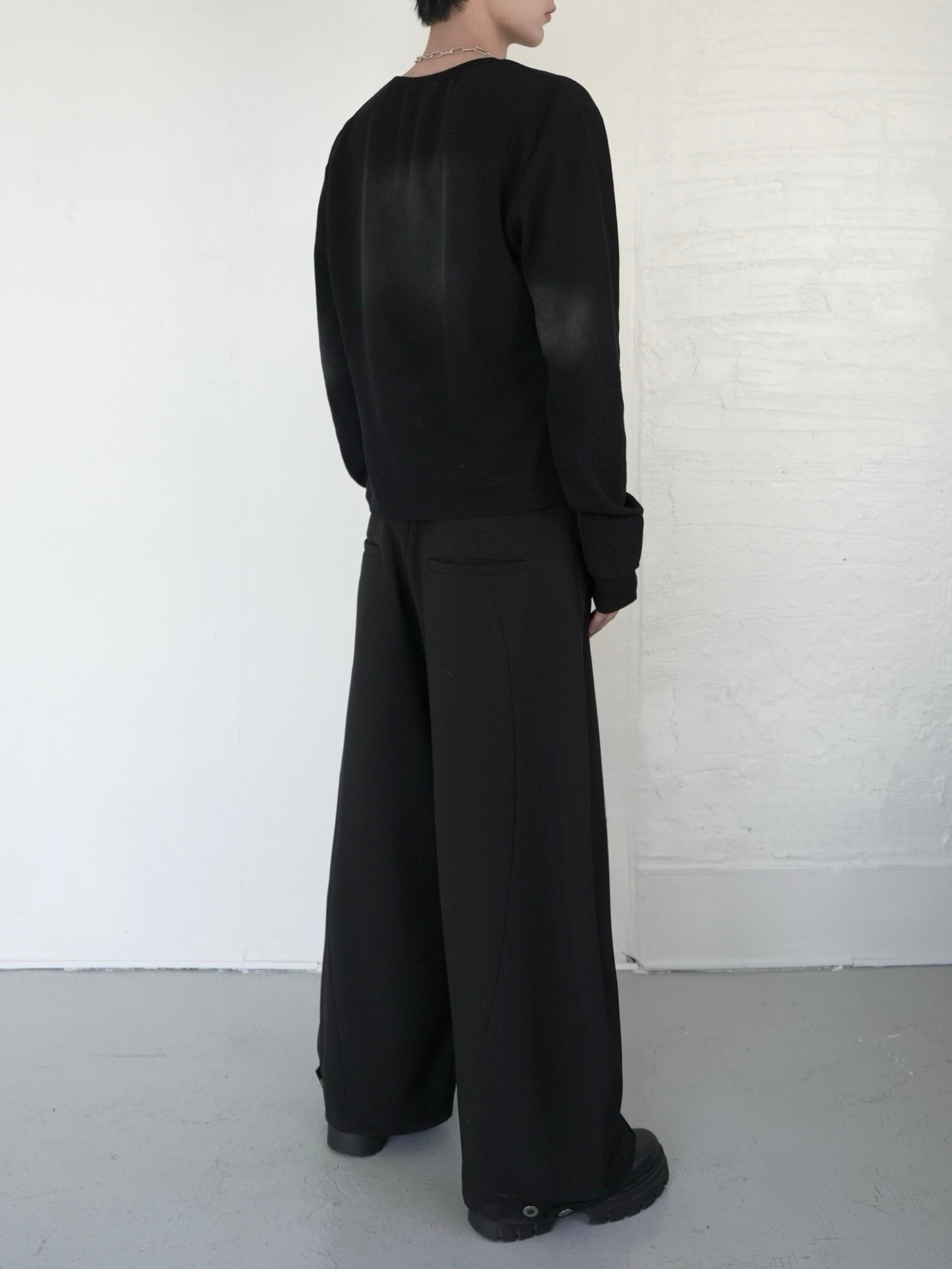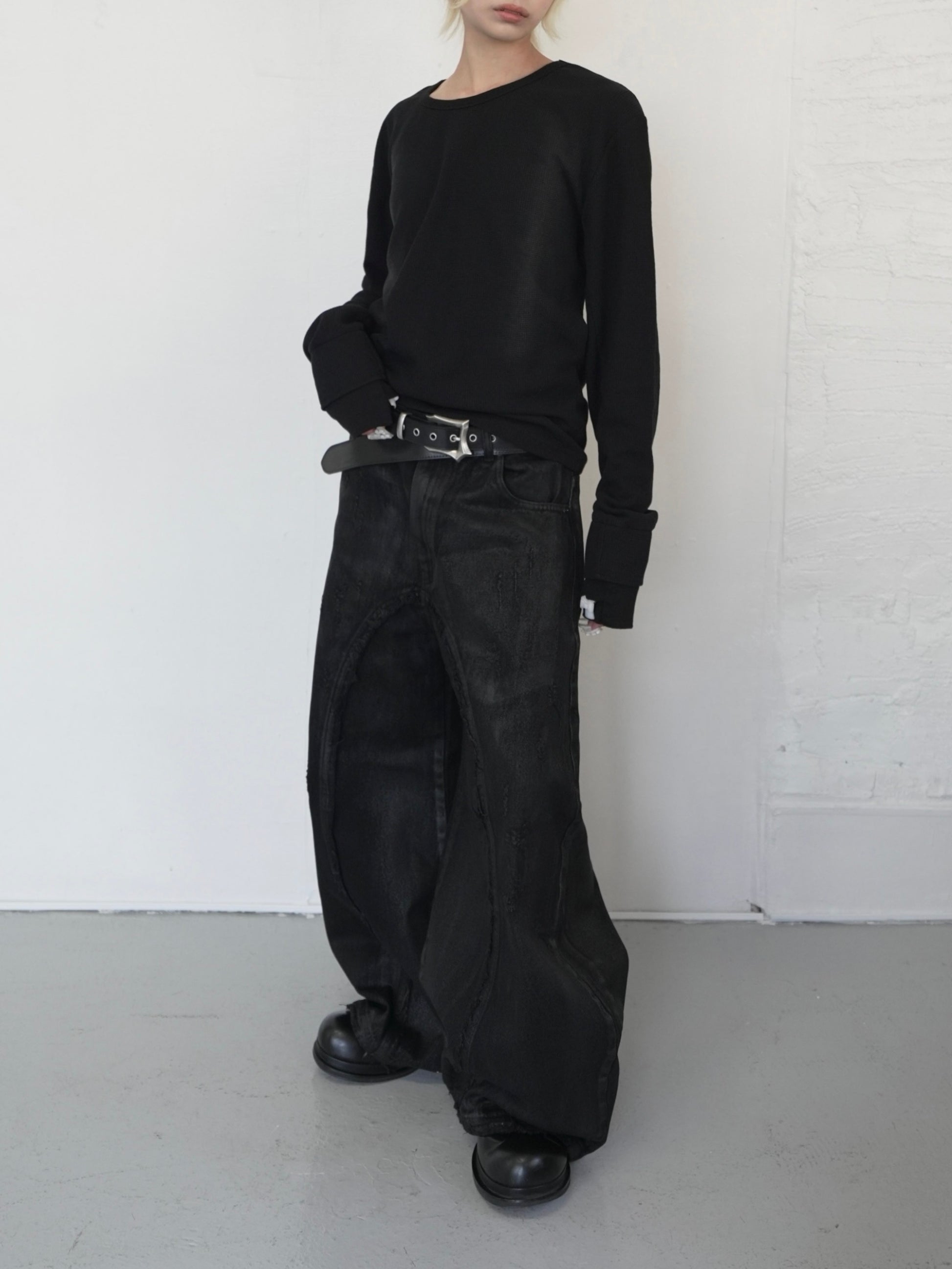 表情のあるワッフル生地を使用したロングスリーブT。